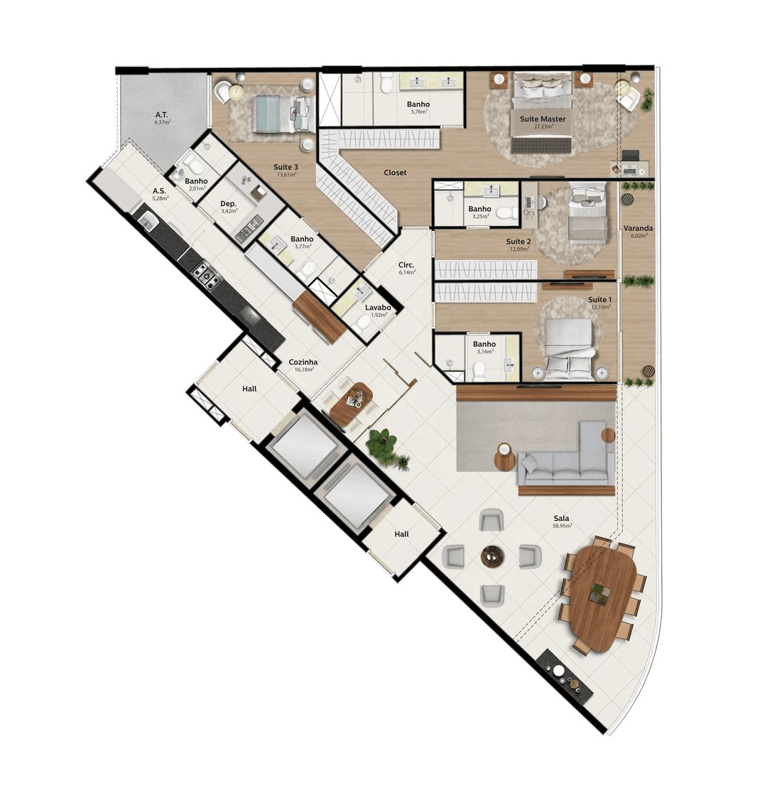 Cercado por um paisagismo moderno assinado por Burle Marx, o Parque Cultural e a orla da Enseada do Suá trazem a natureza para dentro de casa. Com a praia, o shopping e o parque ao redor, a sua rotina será repleta de praticidade e bem-estar.